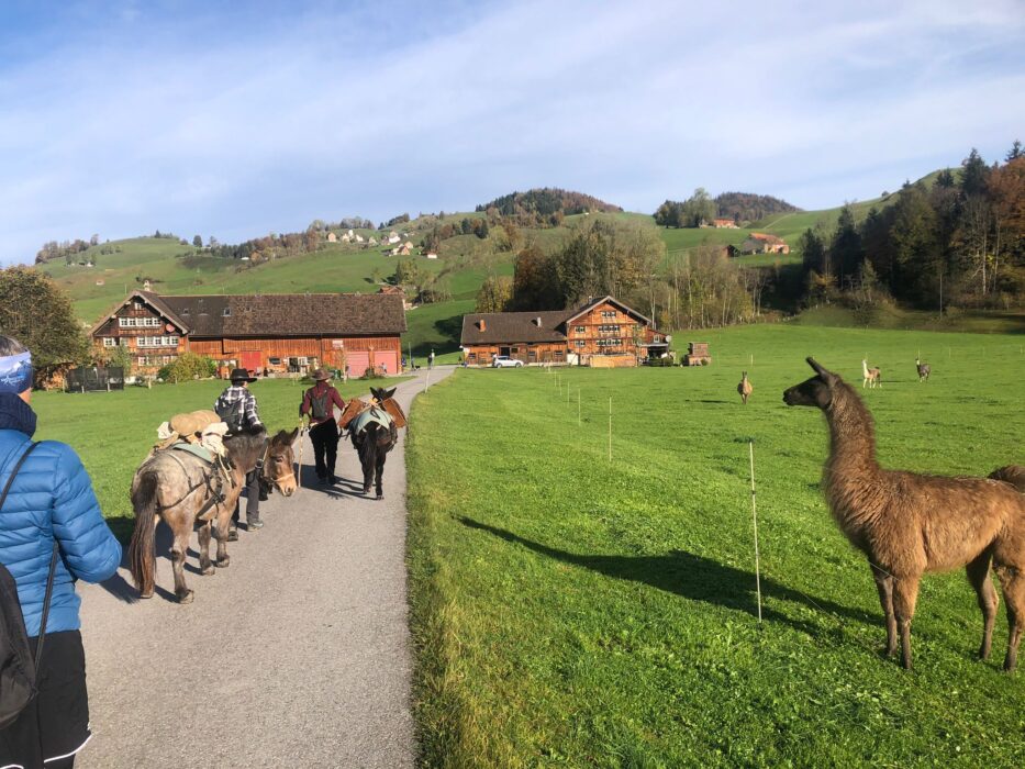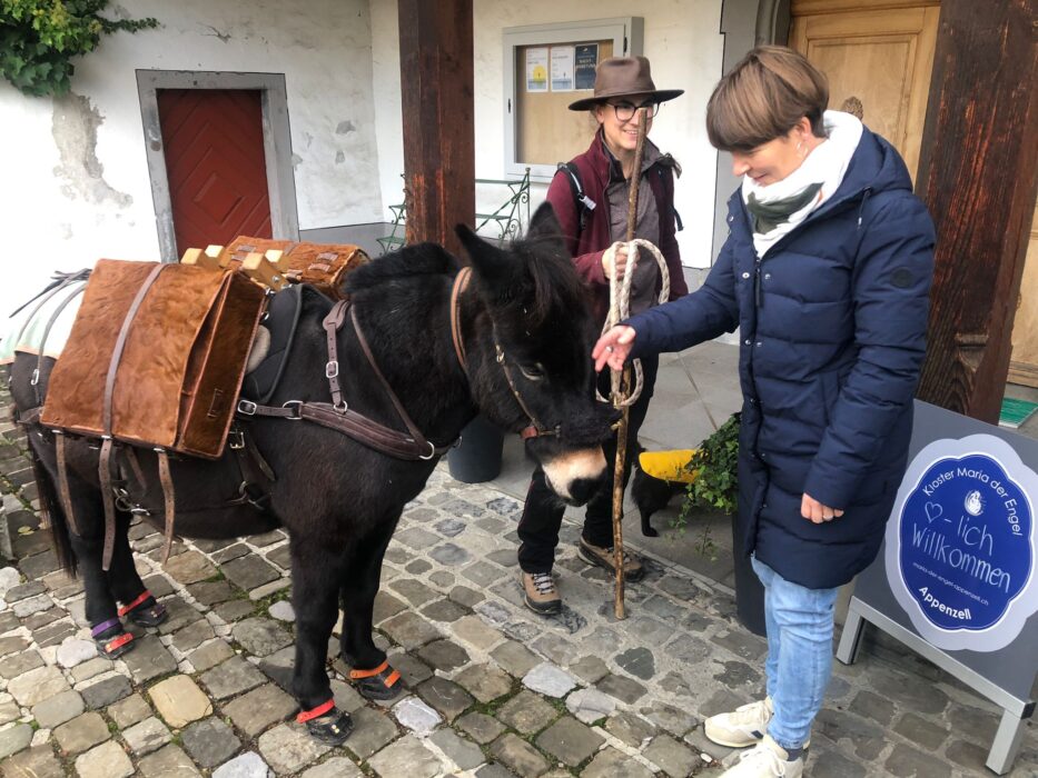 Vielleicht haben Sie sie heute irgendwo zwischen Appenzell und St. Gallen gesehen: Eine kleine Gruppe traditionell gekleideter Wandernder mit zwei Mulis. Angeführt wird die Gruppe von Innerrhoder Martin Josef Manser. «Heute ist Probelauf. Ohne den geht so etwas nicht. Nächste Woche gilt es dann ‘ernst’.» Ernst steht in diesem Fall für eine Wanderung von Appenzell nach St. Gallen – auf dem alten Säumerweg. Vor drei Jahren hatte er dieses Projekt ins Leben gerufen. Im Hinblick auf das 175-Jahr-Jubiläum des Bistums St. Gallen im Jahr 2022. Damals war er mit rund 15 Teilnehmenden und drei Mulis unterwegs. «Es war ein erster Versuch. Und er ist geglückt. Ein herrlicher Tag mit sehr viel schönen und wertvollen Eindrücken.»