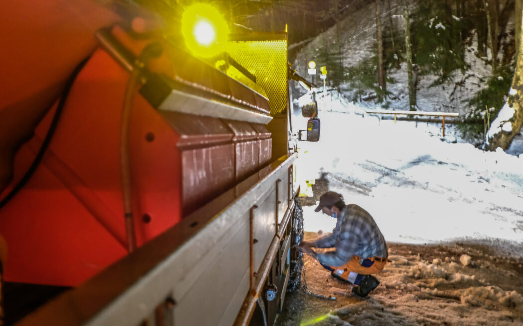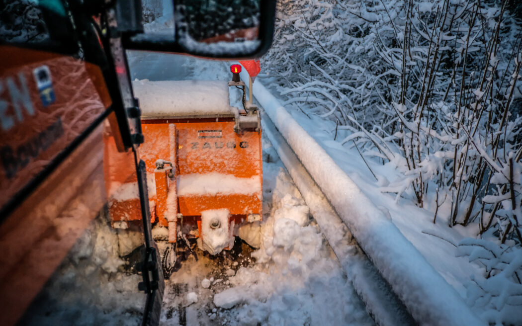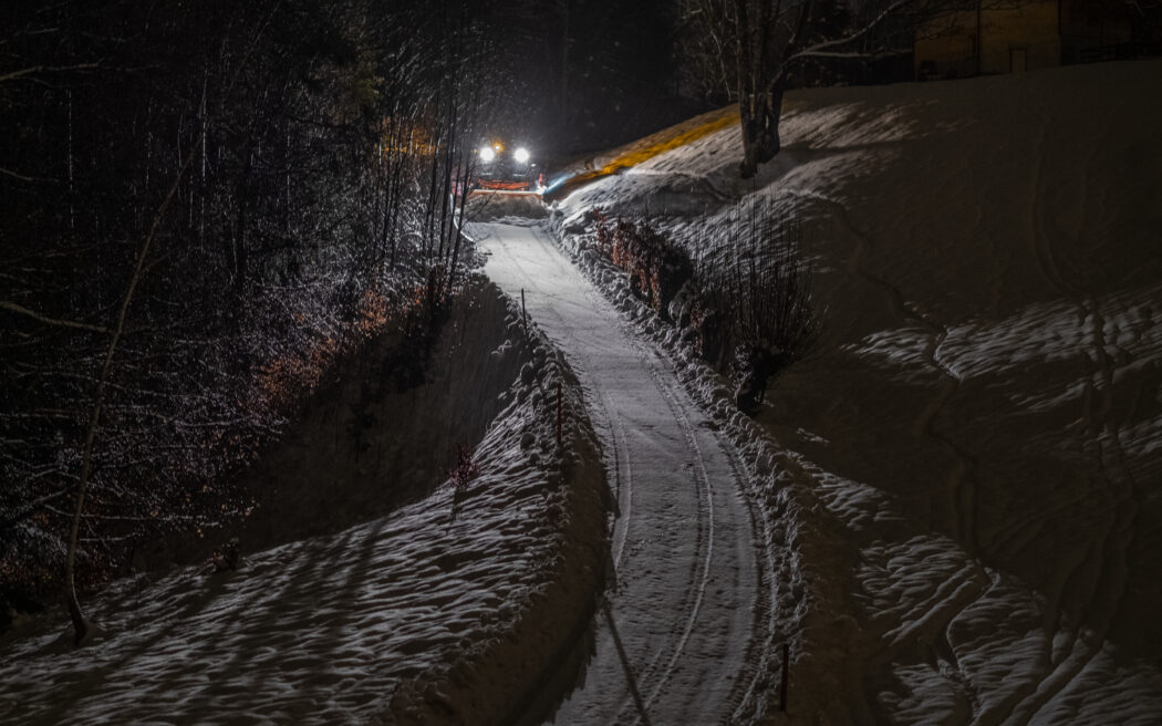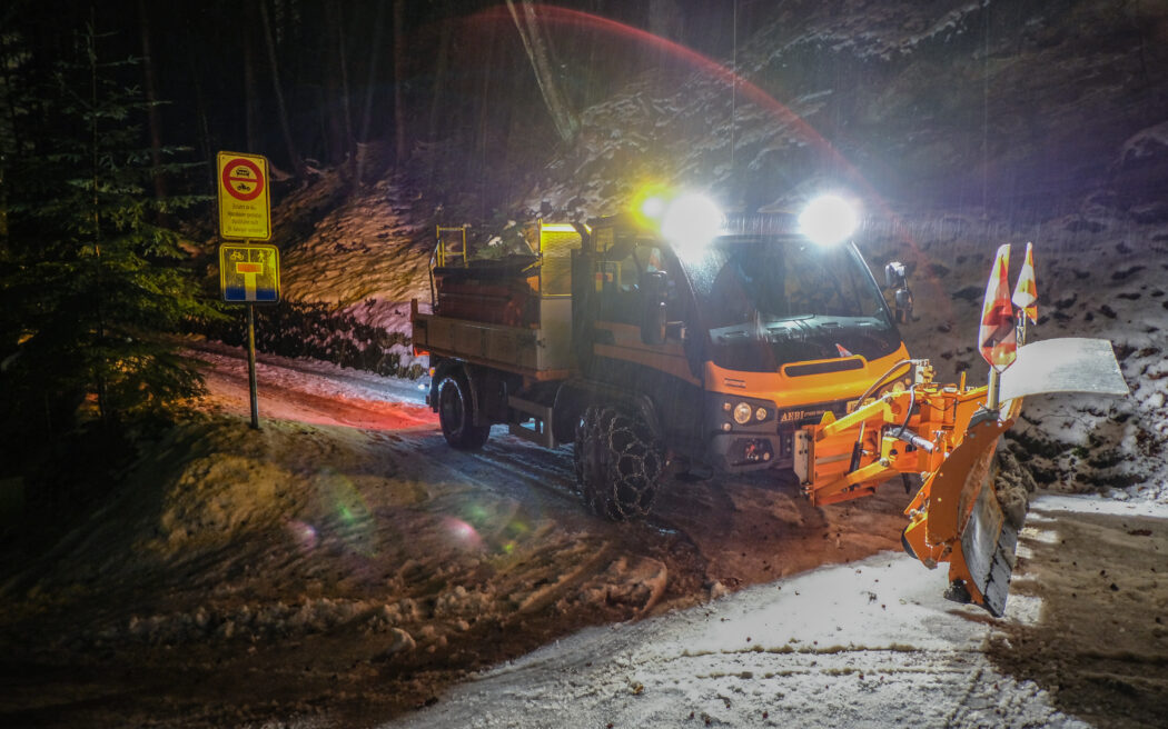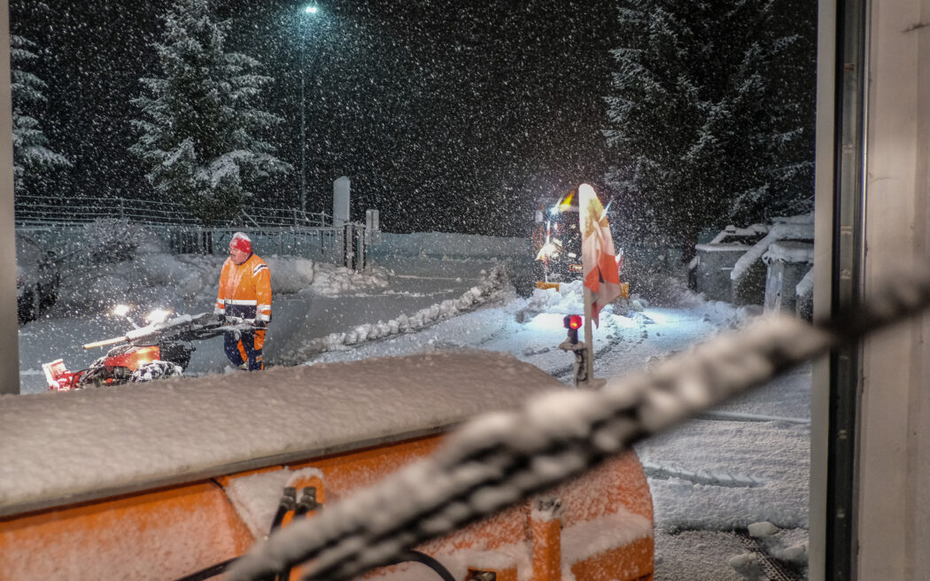 Der Wetterbericht lag richtig. Seit dem frühen Donnerstagmorgen fallen dicke Flocken vom Himmel. Voraussichtlich schneit es noch bis Freitagmittag weiter. Für Werkhof und Tiefbauamt bedeutet das Dauerbetrieb. Alle sechs Schneeräumungsfahrzeuge sind seit 4 Uhr morgens im Einsatz. Beim grössten davon ist die TP heute früh zugestiegen. Gelenkt wird der «Aebi» mit Schneepflug und Salzstreuer von Werkhof-Mitarbeiter Ruedi Graf. Er hat die «Hügeltour». Erst über die Schäflisegg, dann einige Stationen im Dorf und schliesslich hoch nach Schlatterlehn. Mehr erfahren Sie in der Foto-Galerie.